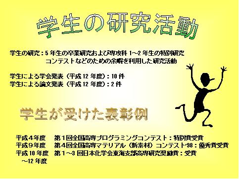 授業として行われる研究では、すぐれた研究は、様々な分野の学会において学生自身が発表することがありますし、その内容が認められて表彰されることもあります。