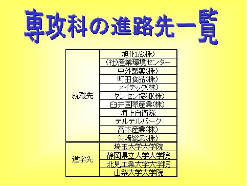 専攻科生の修了後の進路としては、就職と大学院への進学があります。就職率、進学率ともに100%です。