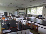 情報演習室 化学工学実験室 恒温機器室 学生実験室 植菌室 動物飼育室 物質工学科棟には、10の研究室、2つの分析機器室、3つの学生実験室があり、走査型電子顕微鏡、核磁気共鳴 分析装置、赤外吸光分析装置など多くの試験分析装置が置かれています。また、コンピューター室もあり、自由に パソコンが使えます。もちろんインターネットも利用でき、自分のホームページも作れます。物質工学科の学生も データ解析やレポート整理などにコンピュータを使いこなします。