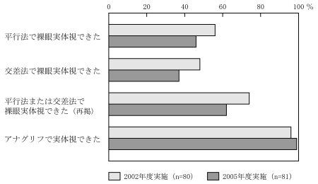 裸眼実体視とアナグリフとでの実体視の可否